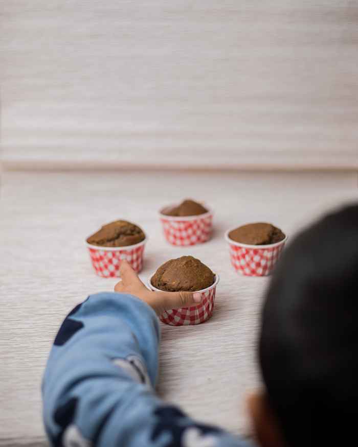 A healthier chocolate-style muffin using cacao and jaggery.